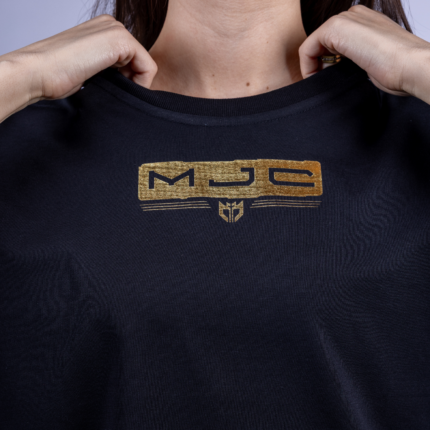 تيشرت حريمي صيفي اسود مع لوجو MJC بيج