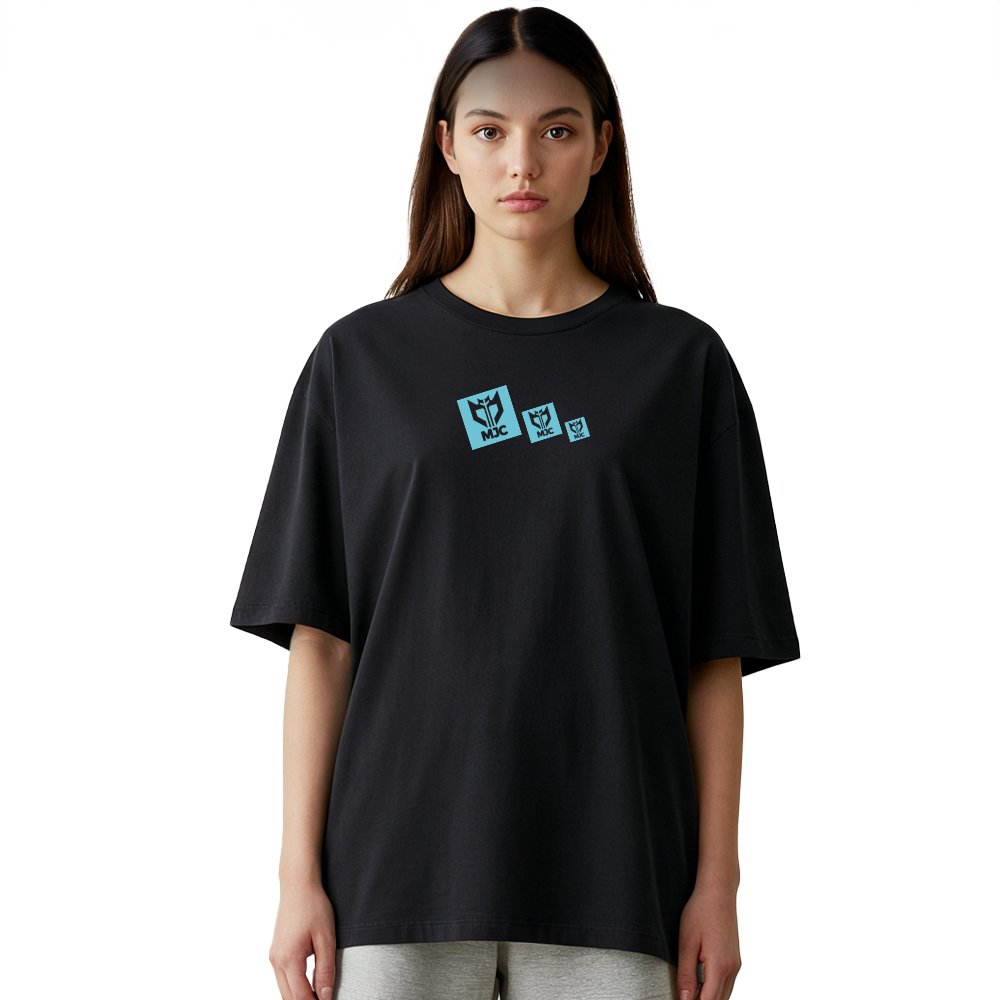 احصلي الآن على تي شيرت اوفر سايز اسود نسائي بشعار MJC السماوي وتمتعي بأناقة مريحة تدوم طوال اليوم!