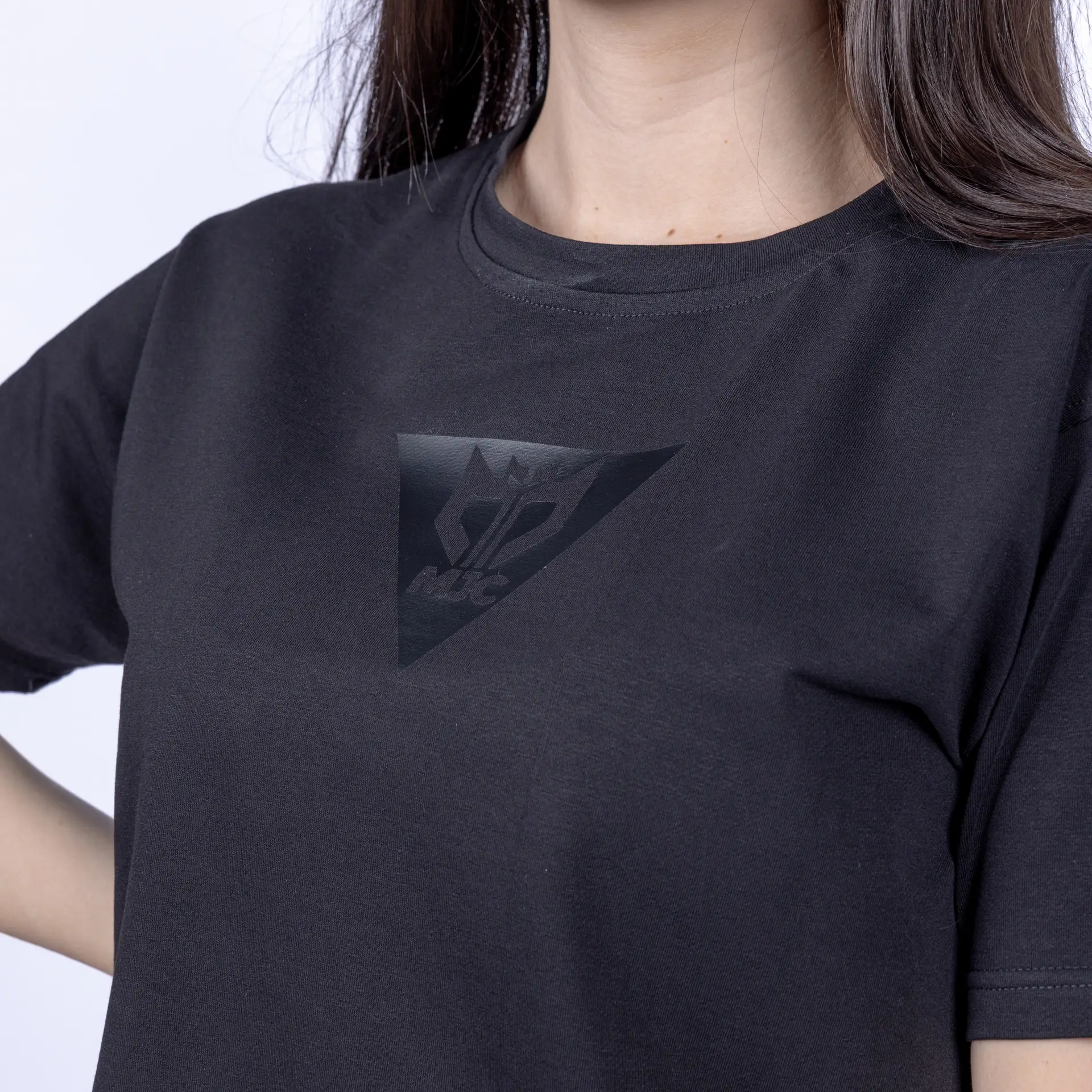 ارتقي بإطلالتك مع تي شيرت ماركة نسائي بلونه الأسود الجذاب وتصميمه البسيط الراقي. يتميز هذا التيشيرت النسائي بشعار MJC الأسود المنقوش بدقة على القماش، ليجمع بين الفخامة والهدوء في قطعة واحدة مثالية لكل يوم.
