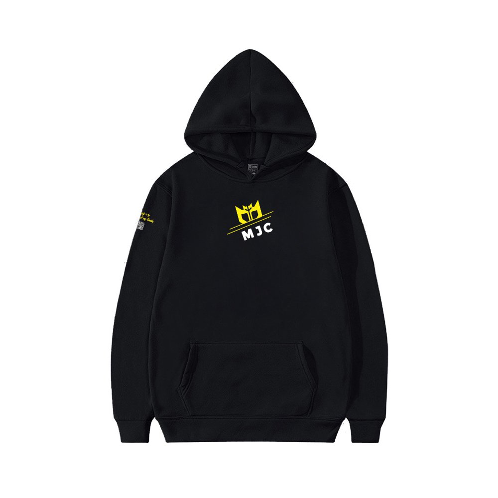 This hoodie for kids features the bold MJC logo, printed on the front, adding a modern, stylish touch to the classic black fabric. -