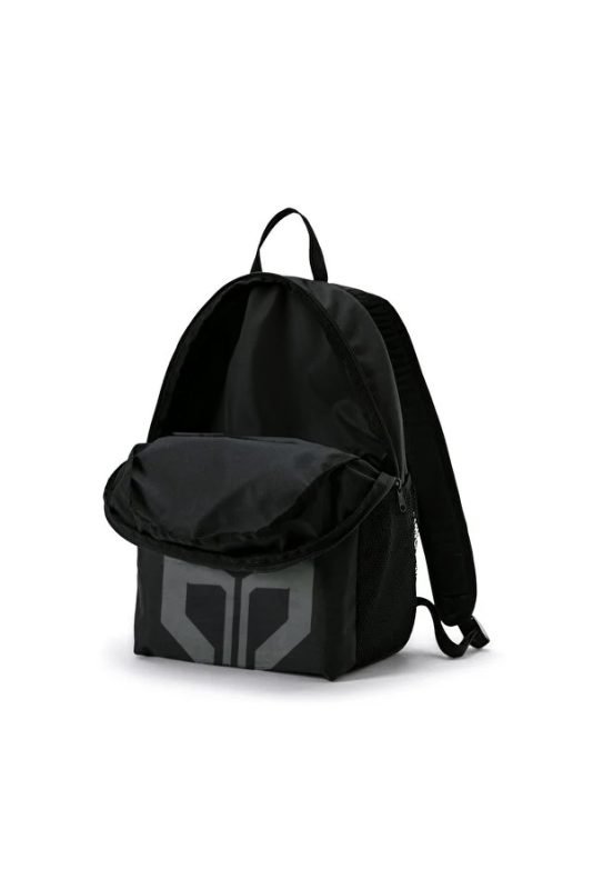 The men’s man bag MJC features a dynamic red logo on a sleek black background, creating a sharp and fashionable look. -